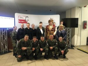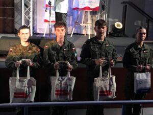 Niezwykłym wyróżnieniem dla naszej szkoły był fakt, że organizator ogólnopolskiego konkursu poprosił Panią Dyrektor dr Małgorzatę Nawojczyk-Bolewską o udział w Gali młodzieży z klasy mundurowej, której zadaniem była asysta przy wręczaniu nagród dla laureatów konkursu. Pan pułkownik Jacek Daleki przygotował młodzież z klasy 302, zgodnie z przyjętymi elementami musztry paradnej, do charakterystycznego ceremoniału przekazywania nagród, który spotkał się z niezwykłym uznaniem zaproszonych gości.