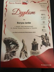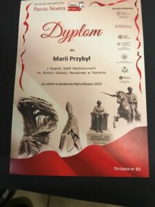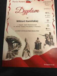 Wśród uczniów, którzy zostali wyróżnieni spośród zaledwie trzech szkół z miasta Poznania i całej Wielkopolski, była drużyna z naszej szkoły – uczniowie klasy 1O3 Wiktoria Kamińska, Maria Przybył i Borys Janke.