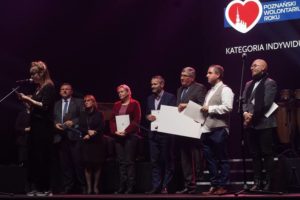 Z ogromna radością pragniemy poinformować o wyróżnieniu, które w kategorii indywidualnej konkursu Poznański Wolontariusz Roku 2019 zdobył ks. Krystian Gramza. Uroczysta gala, podczas której zasłużeni społecznicy otrzymali podziękowania z rąk Prezydenta Miasta Poznania Jacka Jaśkowiaka odbyła się 29 października w Sali Ziemi. Pan Prezydent wyraził głęboką wdzięczność za zaangażowanie i ofiarność w pracy na rzecz młodzieży z naszego Zespołu Szkół, docenił również umiejętności organizacyjne ks. Krystiana Gramzy. Podkreślił, iż działając na rzecz innych osób, opiekun naszego Koła Wolontariatu inspiruje uczniów, zachęcając ich do podejmowania wyzwań oraz samopomocy. My także przyłączamy się do gratulacji, życząc ks. Gramzie dalszej motywacji, wielu nowych pomysłów oraz tego, aby praca w wolontariacie była dla niego źródłem satysfakcji.