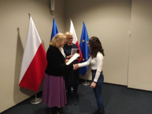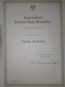 Z radością informujemy, że dwie uczennice naszej szkoły – Emilia Michalak z klasy IVT2 oraz Nicole Jasiak z klasy IILO3 zostały stypendystkami Prezesa Rady Ministrów.Wręczenie dyplomów i nagród książkowych przez Wielkopolskiego Kuratora Oświaty Panią Elżbietę Leszczyńską oraz Wicekuratora Oświaty Pana Zbigniewa Talagę odbyło się 13 grudnia i poprzedzone zostało interesującym wykładem na temat roli wyobraźni w życiu człowieka. Oficjalną część uroczystości zamknęło krótkie przemówienie, w którym reprezentant nagrodzonych uczniów podziękował w ich imieniu za otrzymane wyróżnienia, zaś poczęstunek w miłej, świątecznej już atmosferze zakończył spotkanie.