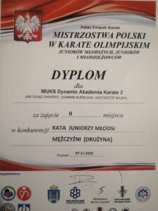 Tym bardziej miło nam poinformować o kolejnych już sportowych sukcesach Mateusza Chwirota, ucznia klasy 2PO2. Podczas Mistrzostw Polski w Karate WKF, które odbyły się 7 listopada w hali Cityzen, Mateusz zdobył II miejsce w konkurencji kata drużynowym juniorów i III miejsce w konkurencji kumite drużynowym juniorów. Reprezentował klub Dynamic Akademia Karate.