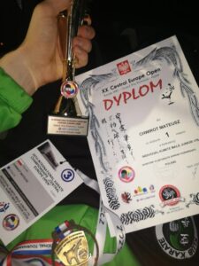 Tym razem podczas zawodów rankingowych karate ,,XX Central Europe Open” Mateusz wywalczył pierwsze miejsce. To kolejne osiągnięcie w jego karierze sportowej świadczy wyraźnie o tym, że wytrwała, ciężka praca połączona z pasją przynosi wielkie efekty i daje zadowolenie z dobrze wykonanego zadania.